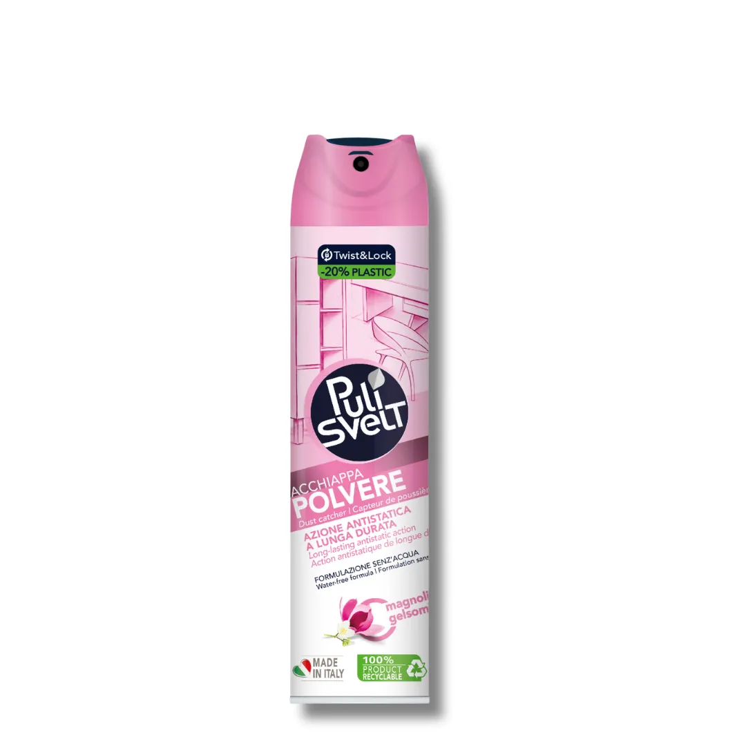 Antistatinės dulkių valymo putos efektyviai valdo ir poliruoja kietus paviršius, užtikrindamos, kad dulkės būtų pašalintos be išsklaidymo. Jos puikiai tinka visiems kietiems baldams, įvairių tipų grindims, taip pat sienų ir grindų plytelėms. Šios putos ne tik pašalina dulkes ir nešvarumus, bet ir atkuria natūralų paviršių blizgesį, suteikdamos antistatinį efektą. Malonus magnolijų ir jazminų aromatas. Pakuotė yra perdirbama.