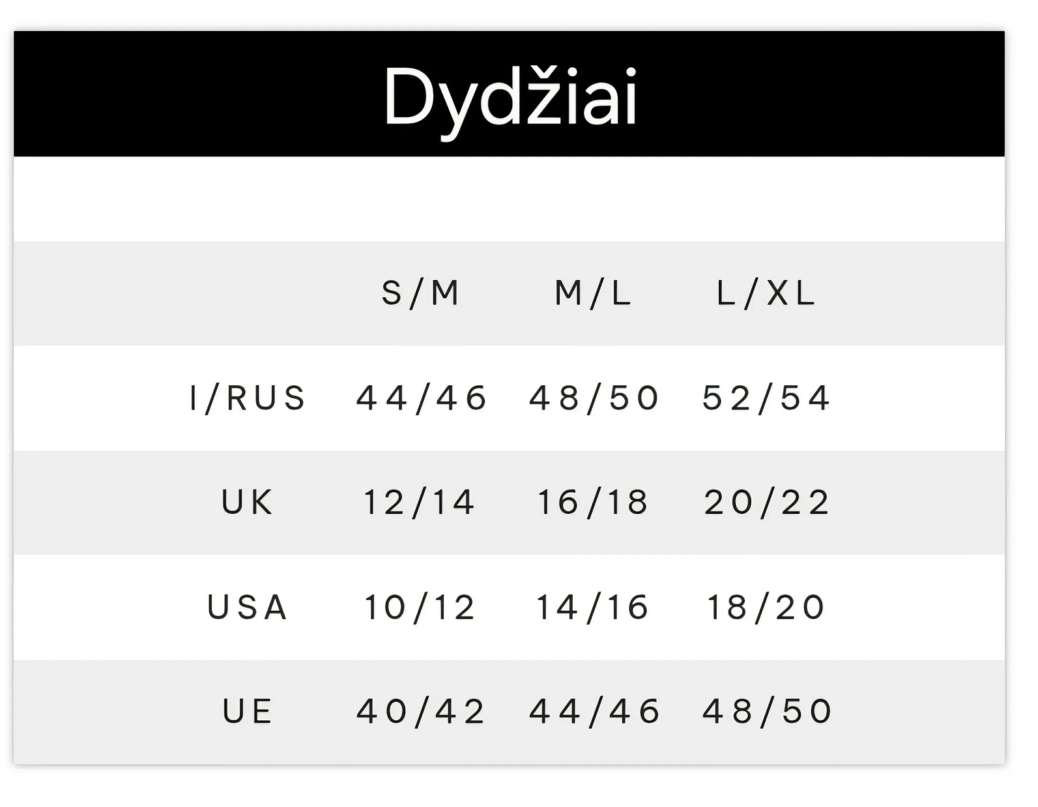 Dydžiai: S/M,  L/LXL